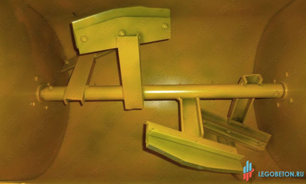 Преимущество горизонтальных смесителей перед принудительными бетоносмесителями с вертикальным валом в том, что расположенные навстречу друг другу лопасти максимально эффективно перемешивают смесь, не оставляя непромешанных участков.